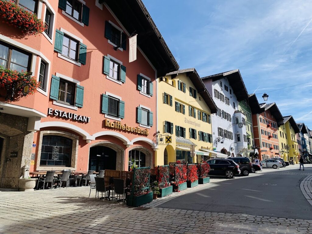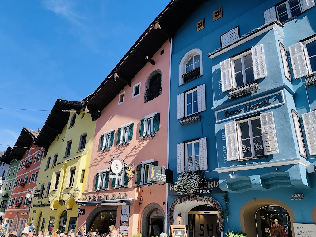 Starówkę Kitzbühel stanowią w zasadzie dwie główne ulice, przy których skupione jest życie miejskie. Co zdecydowanie nadaje uroku miastu, to właśnie szeregi kolorowych domków. Wszystkie zadbane, wszystkie pięknie udekorowane kwiatami a w ich dolnych częściach liczne knajpki, restauracje i sklepiki, i to nie tylko te z klasycznymi pamiątkami.