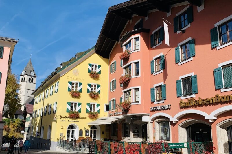 Niewiele dalej, odkryjecie kolejne kolory i pięknie udekorowane budynki. W Kitzbühel w sumie zgubić się nie da i byłoby to zdecydowanie za mocne słowo, jednak poszwędać się po jego zakamarkach da się z pewnością i taką opcję Wam najmocniej polecamy.